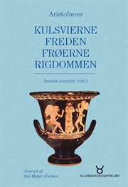 Med nærværende udgivelse afsluttes Kai Møllers Nielsens årelange projekt: at fordanske Aristofanes’ samlede komedier. I serien er tidligere udkommet Aristofanes: Fire Komedier (Syddansk Universitetsforlag 2000) og Aristofanes: Kavaleriet, Skyerne, Lysistrate (Syddansk Universitetsforlag 2005). Herved foreligger den første fuldstændige oversættelse af Aristofanes’ komedier til dansk.